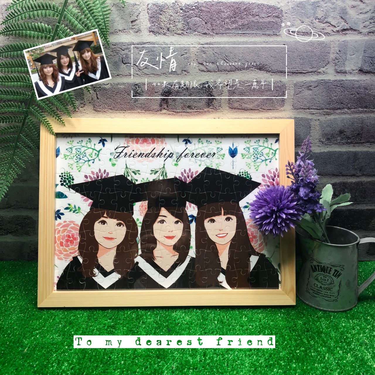 畢業友情紀念|人像客製化拼圖原木框