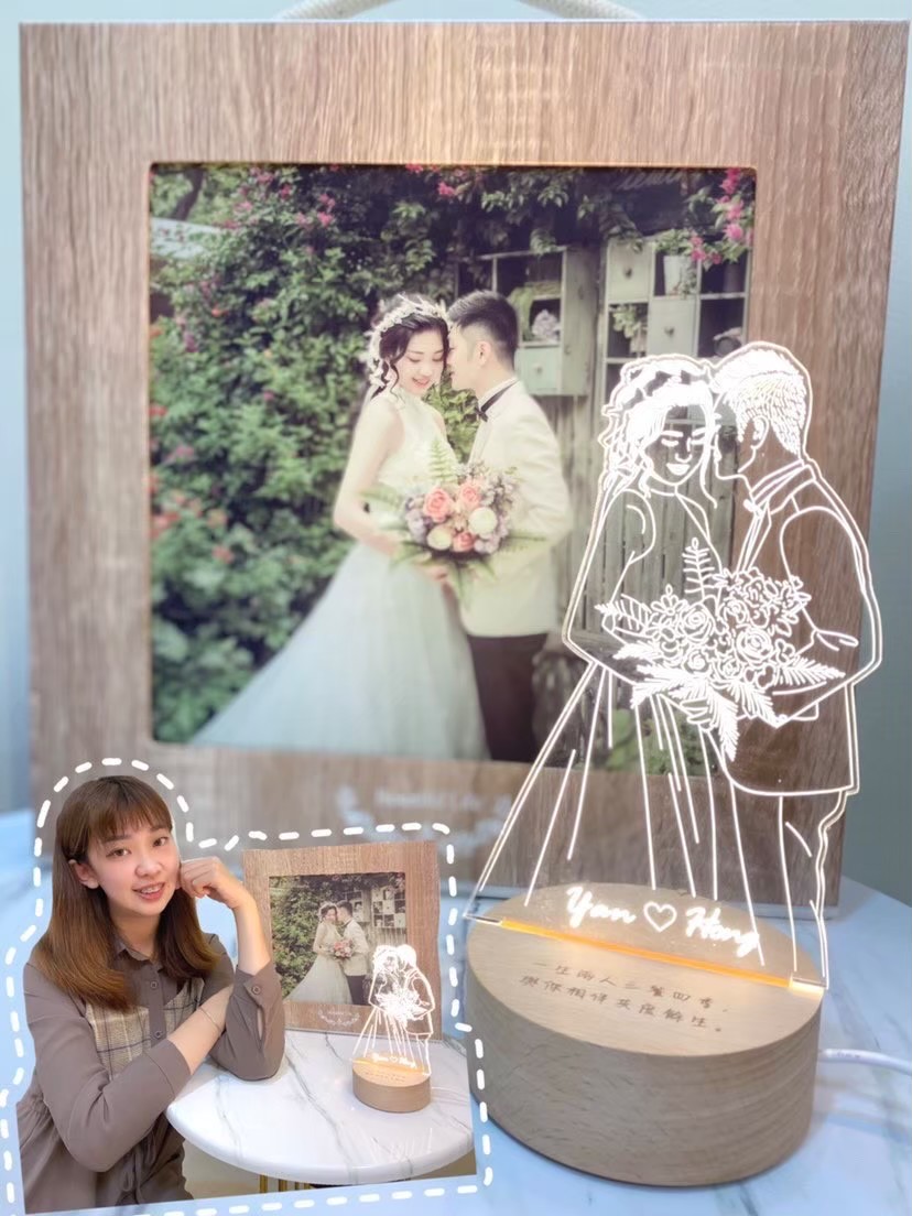 • ✔ 照片 → 專屬線條插畫 → 客製化雕刻壓克力夜燈